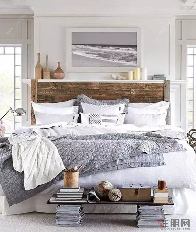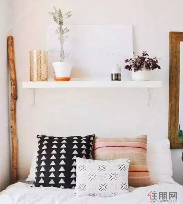 看你有多少东西要放,就可以来多少块搁板,床头摆上几幅装饰画,美哉~