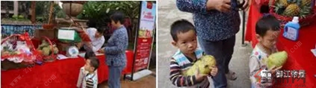 椅子上一箩筐的菠萝和芒果,不仅十分抢眼,小广场上四溢的果香,更让大伙闻到都垂涎三尺。还没称重呢,可爱的小业主都直勾勾盯上了诱人的水果,领到了大芒果后,更巴不得马上啃上两口。